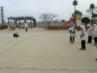 あと1か月で年長さんは卒園式です。たくさん一緒に遊び、優しくしてもらった年長さんとのお別れ遠足とお別れ会をしました。