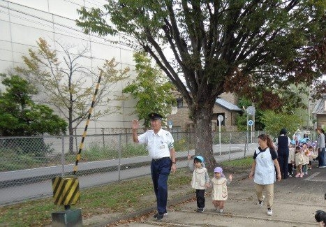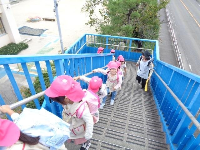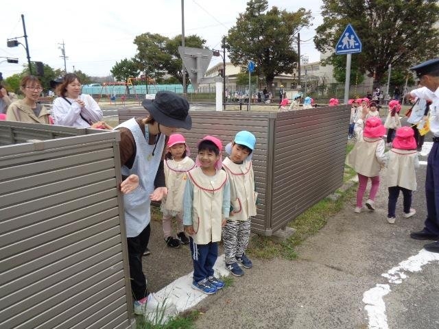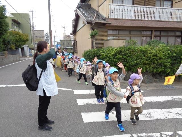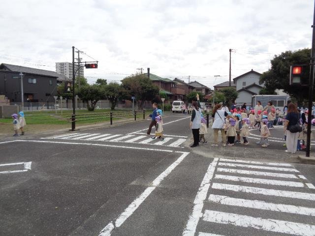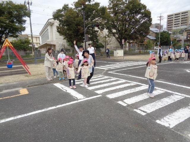 年長さんは年少さんの手を引いて安全に道路を横断できるようにしてくれました。