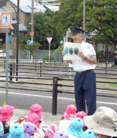 交通指導員さんの話をしっかり聞いて、交通安全について学ぶことができました。