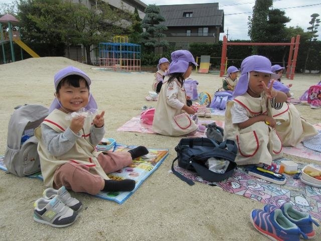 絶好の遠足日和で、秋の自然を感じながら公園で遊んだり、おいしいお弁当を食べたりして楽しむことができました。