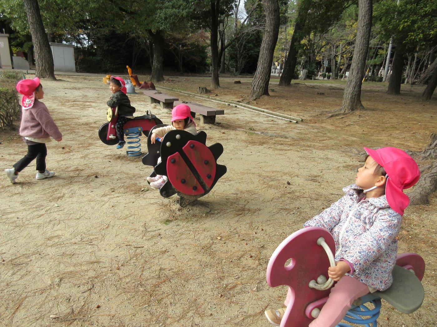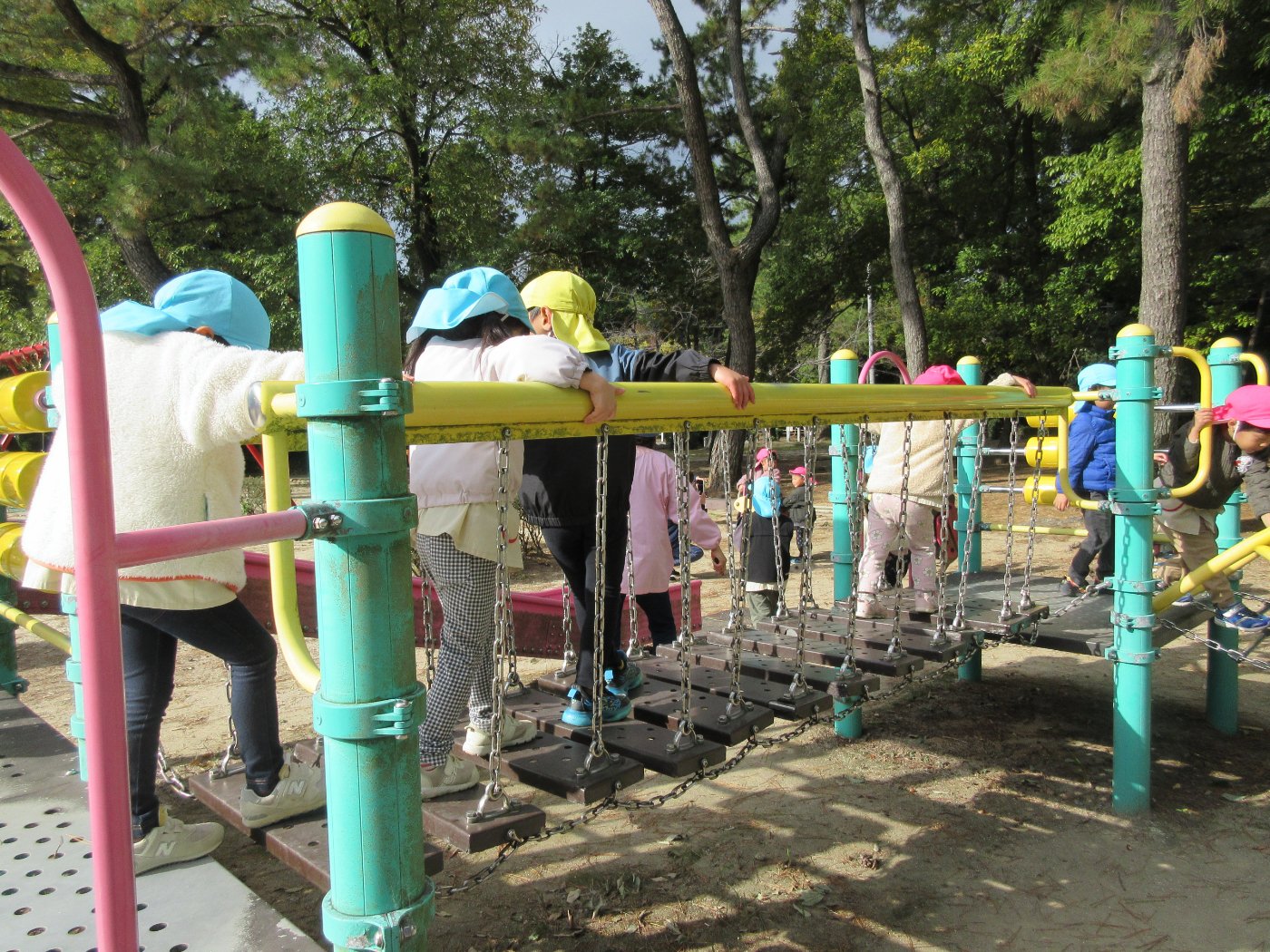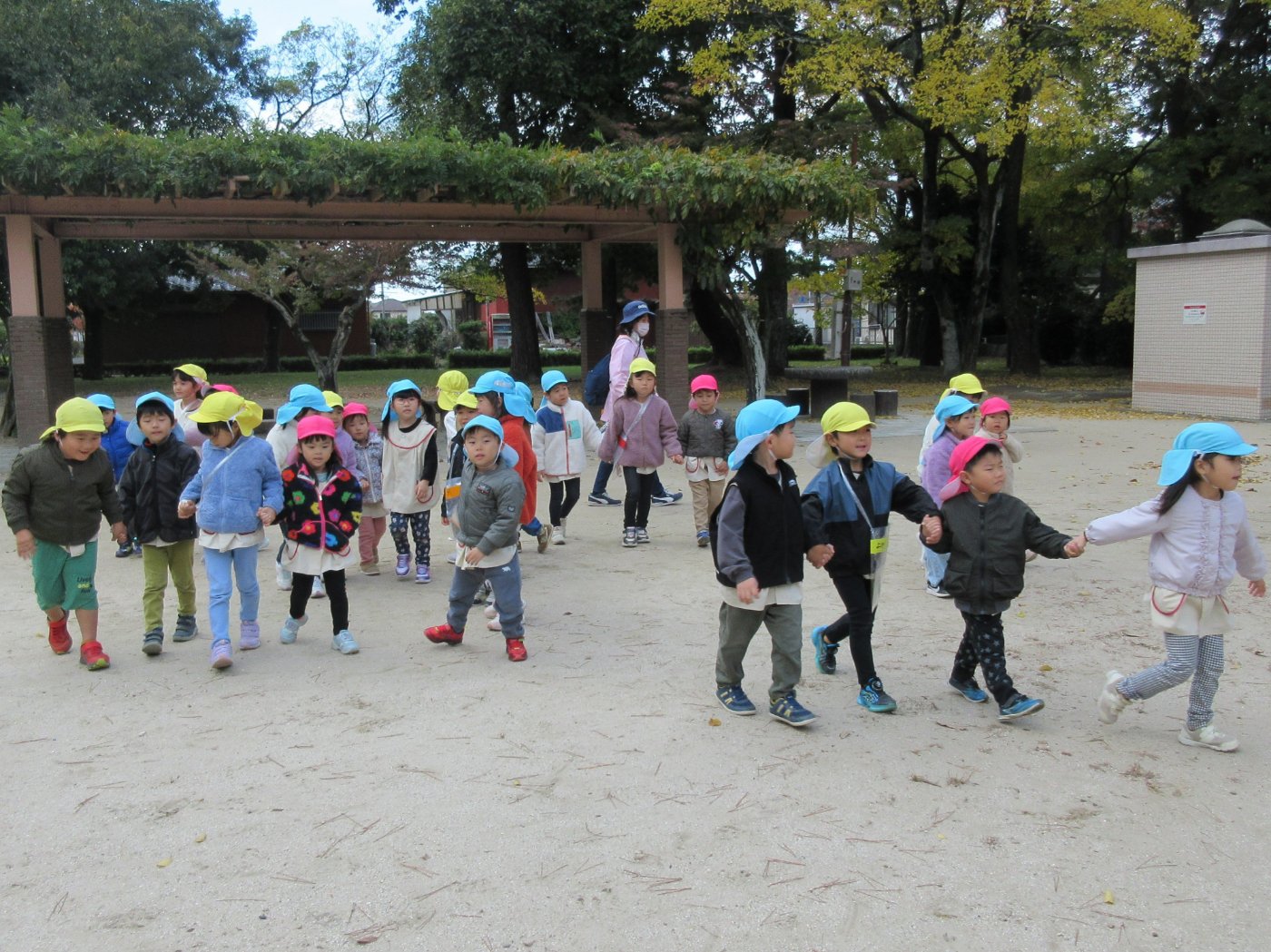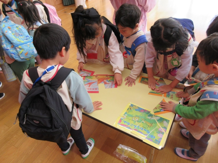 11月18日(火)に遠足で東端農村公園に行きました。公園では、異年齢グループでパズル探しに挑戦!隠されているパズルをグループのみんなで力を合わせて探し出すことができました。公園でいっぱい遊んだ後、保育園の遊戯室で残りのピースを探し、組み合わせたらパズルの完成。出来上がったパズルを遠足のおやつと交換してもらい、嬉しそうな子どもたちでした。遊戯室ではみんなで弁当やおやつを食べ、楽しい時間を過ごしました。