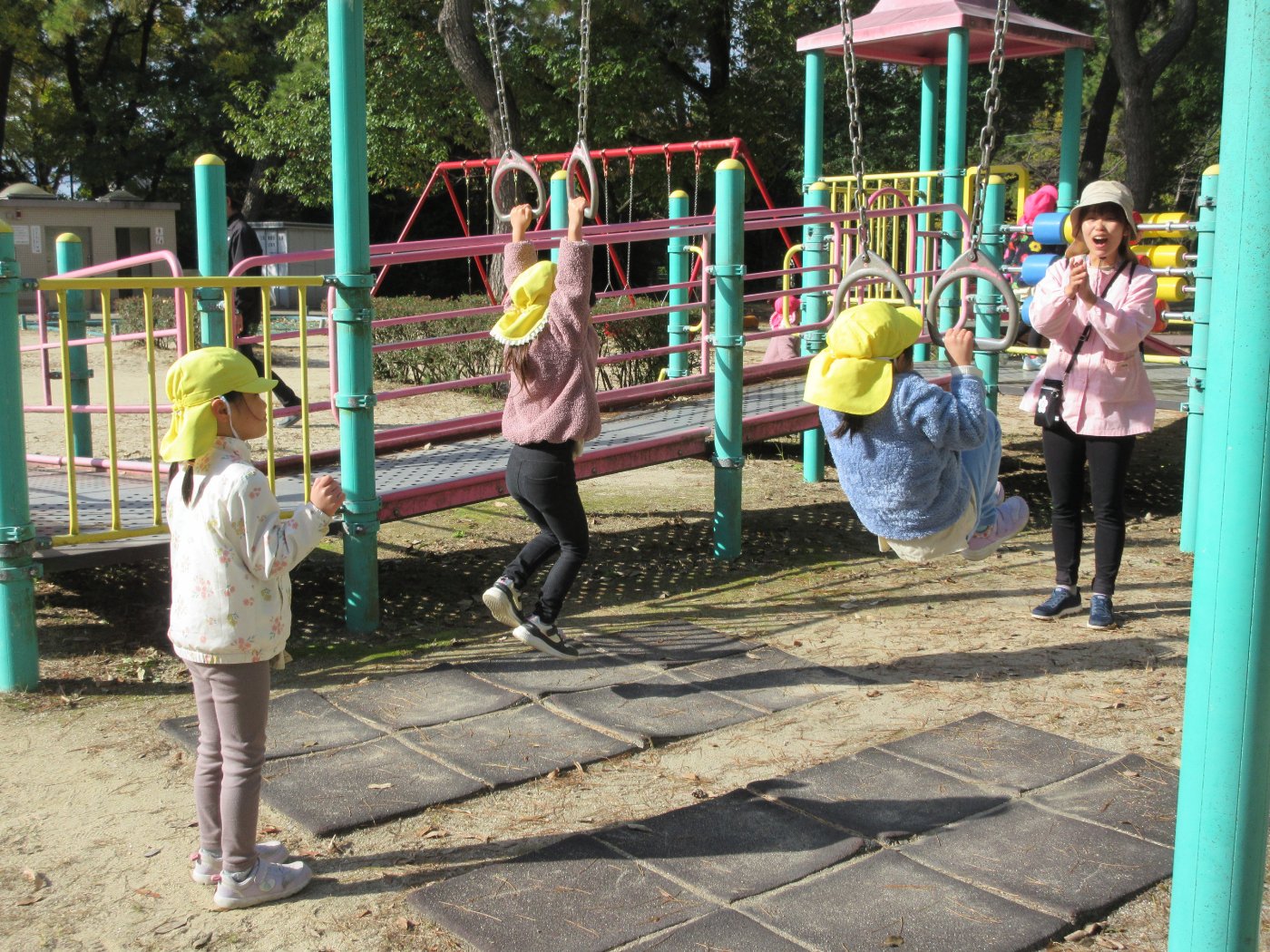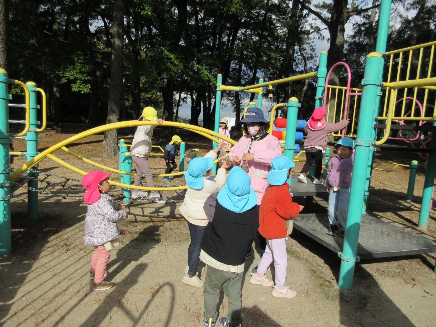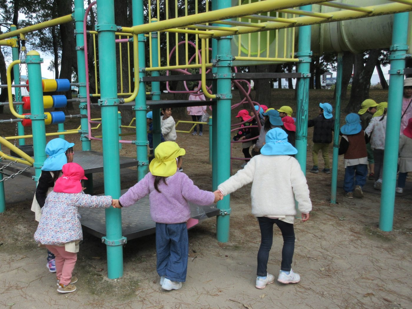 11月18日(火)に遠足で東端農村公園に行きました。公園では、異年齢グループでパズル探しに挑戦!隠されているパズルをグループのみんなで力を合わせて探し出すことができました。公園でいっぱい遊んだ後、保育園の遊戯室で残りのピースを探し、組み合わせたらパズルの完成。出来上がったパズルを遠足のおやつと交換してもらい、嬉しそうな子どもたちでした。遊戯室ではみんなで弁当やおやつを食べ、楽しい時間を過ごしました。
