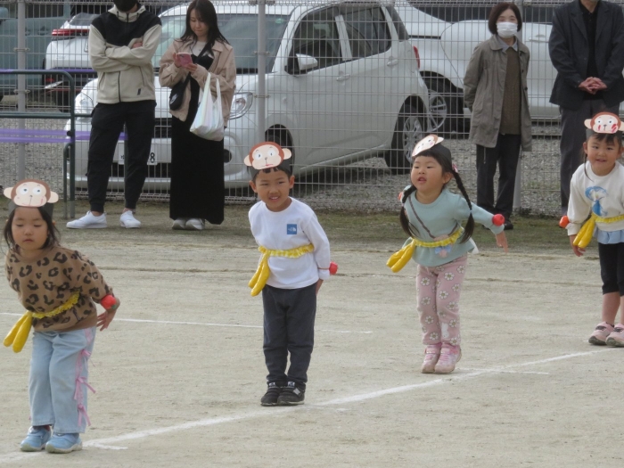11月8日(土)に令和7年度運動会がありました。初めはたくさんのお客さんを前に緊張している様子も見られましたが、お家の方にたくさん応援してもらい、かけっこや遊戯に参加する元気な姿を見てもらうことができました。親子で競技・音遊を楽しみ、笑顔いっぱいの素敵な運動会になりました。