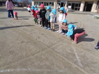 年長児は、オープニングで披露する色々な運動遊びに遊戯室で挑戦しました。繰り返し取り組むことで、コツをつかんでできるようになったり、友達ができるようになると一緒に喜ぶ姿も見られました。戸外で取り組むようになると自信をもって披露し、年中児・年少児から「すごーい」「かっこいい」という声がありました。また、リレーでは勝ったり負けたりを繰り返しながら、チームの友達とどうしたら勝てるのか相談したり、走る順番を決めたりしました。遊戯では、体育棒が長いため、最初は扱いに戸惑う姿もありましたが、少しずつリズムに合わせられるようになり、とってもかっこよく踊れるようになりました。