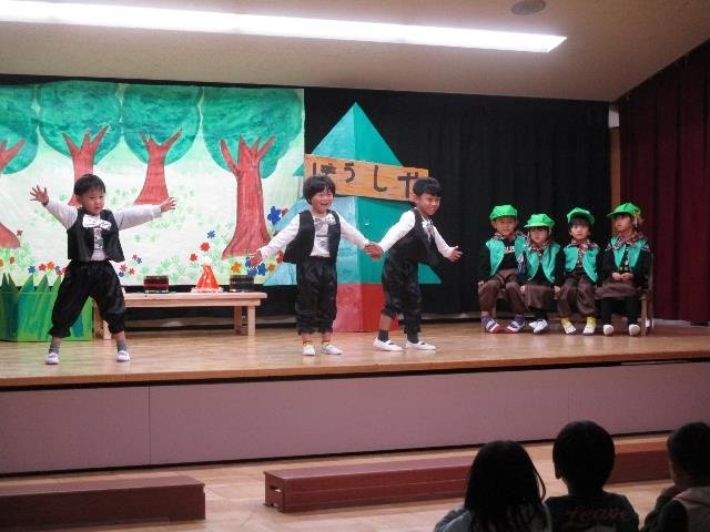 12月6日に生活発表会がありました。当日は、多くの保護者の方に見てもらい、緊張しながらも子どもたちは一生懸命役になりきったり、踊ったりして演じていました。