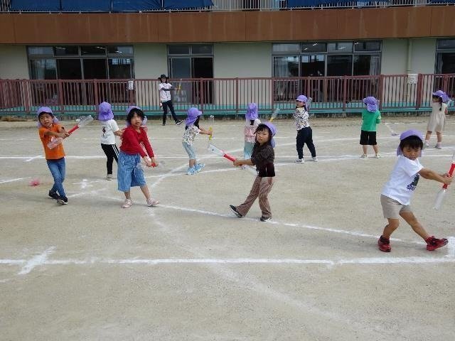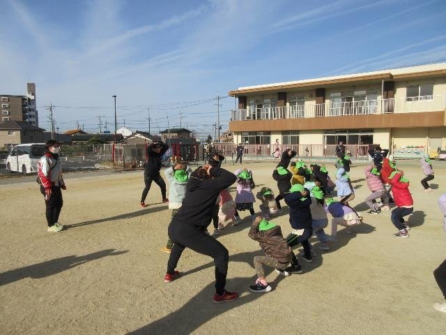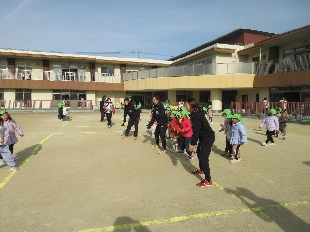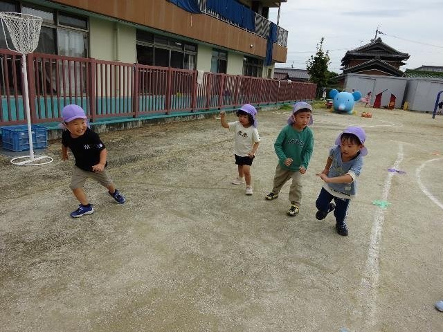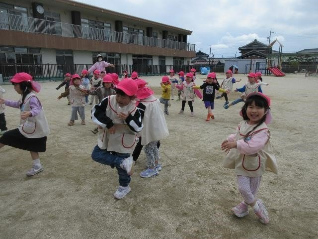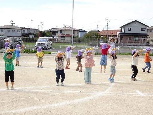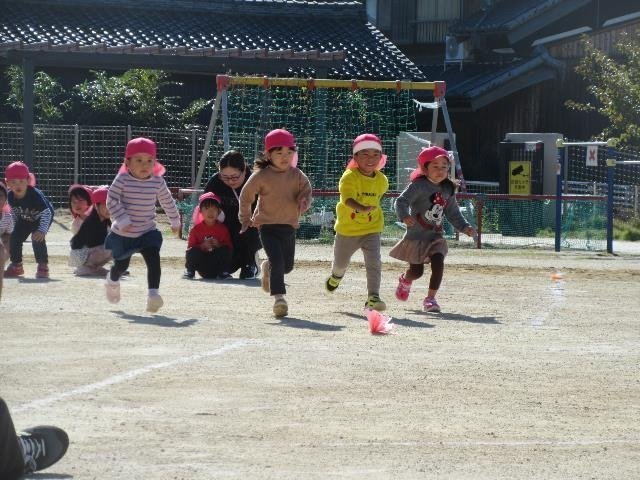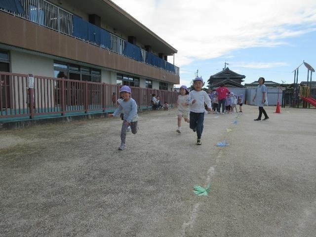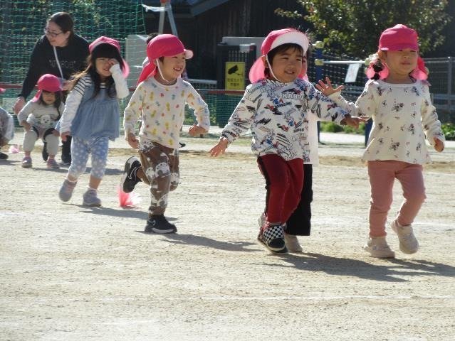 年中児は友達と一緒に走り、競うことが楽しくなってきました。「先生、一緒に走ろう!」とたくさん誘いかけてくれました。