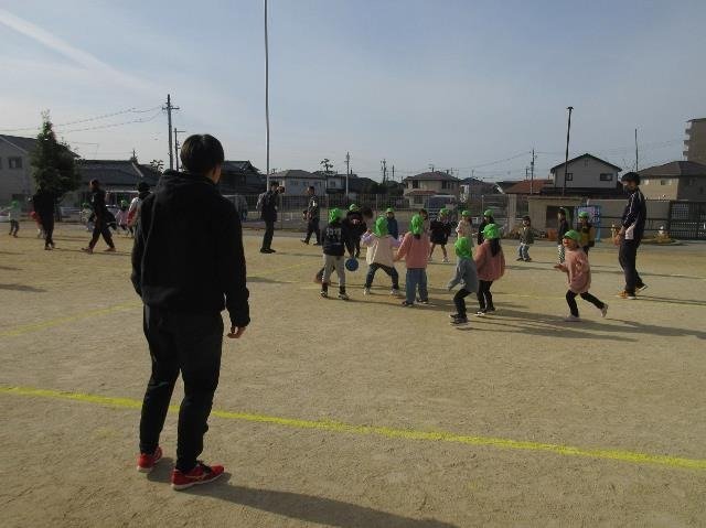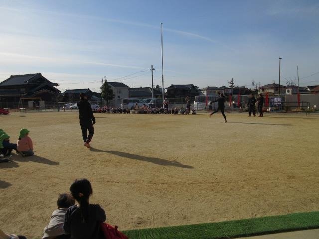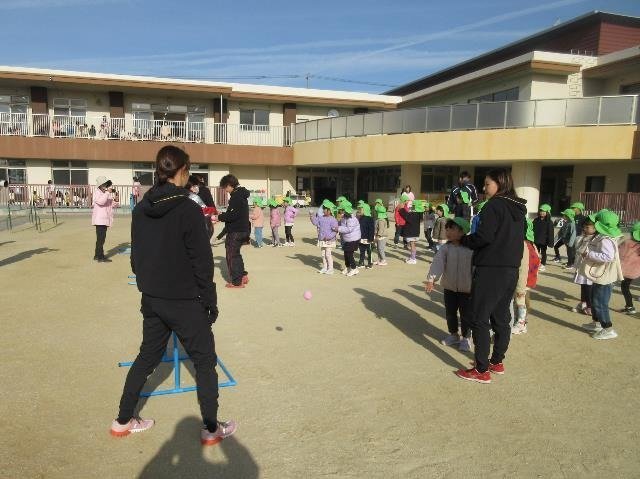 次は園児たちが得意なドッジボール。ですが、さすがスポーツ万能な選手たち!「ほら、こっち投げてみて!」「当てちゃうよ~!」と余裕の表情。力を振り絞り、なんとか園児たちが辛勝しました。