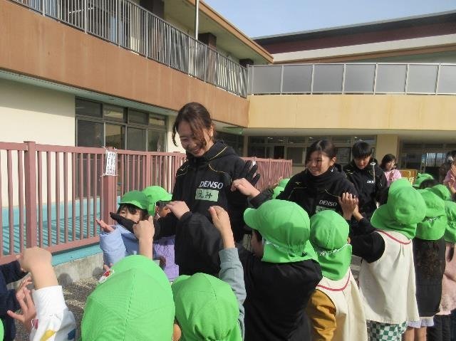 最後に花道を作り、みんなでタッチ!「バイバ~イ!」「また会おうね!」とお別れのあいさつ。DENSOブライトペガサス「中溝優生選手」「清瀨紗良羅選手」「藤本恵未選手」「猿田麻実選手」「住友ゆづき選手」の5人の選手のみなさん、楽しい思い出をありがとうございました。