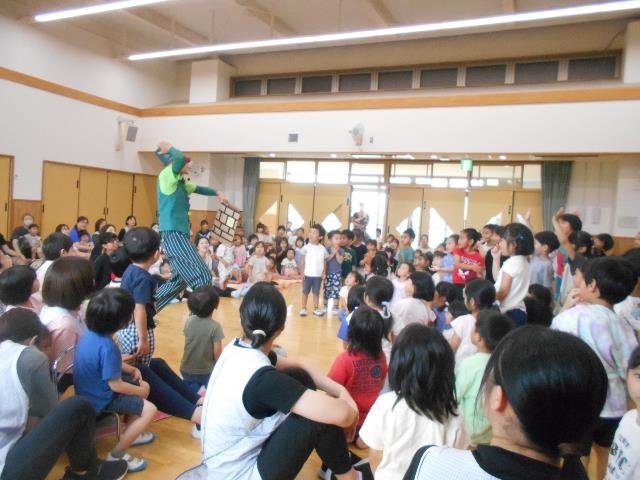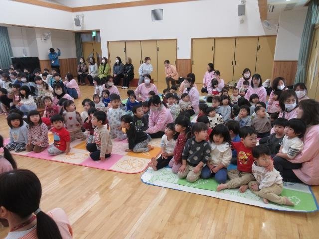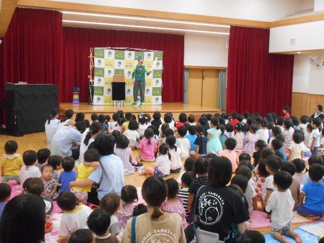 ひよこクラブ(未就園児)の行事でピエロショーを見ました。手品やサーカス芸を見て子どもたちの歓声と笑い声がホールに響き渡りました。