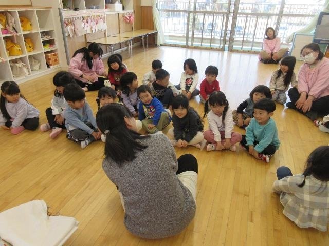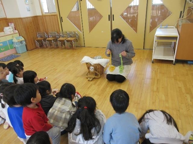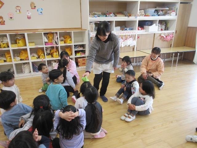 1月15日(木) わらべうたを通して、歌に合わせてゆったりとふれあい遊びを楽しみます。
