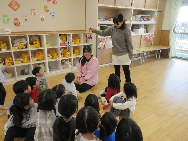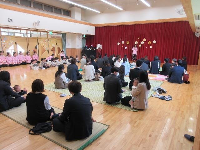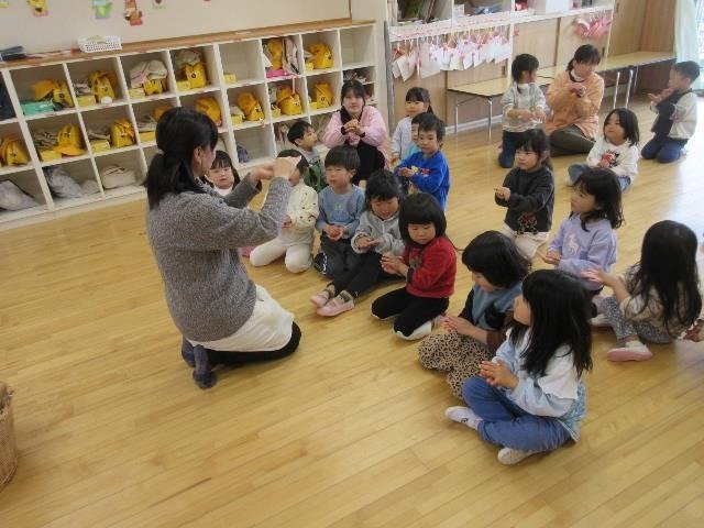 講師に杉浦香里先生を招き、年少児や園開放「ひよこクラブ」に参加してくれた未就園児親子がわらべうたを楽しみました。