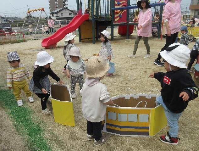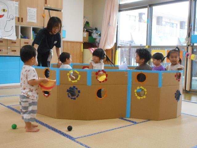 保育室では友達と一緒にこいのぼりの作成をしたり、廃品工作でイメージを共有したりして楽しそうです。