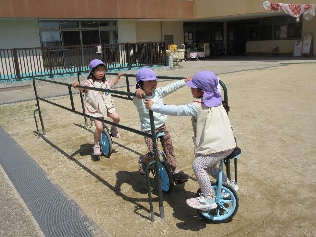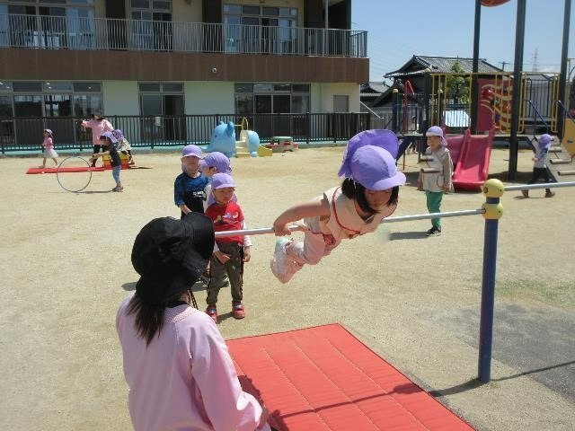 戸外では、体操を踊ったり、一輪車や鉄棒に繰り返しチャレンジしたりして元気いっぱいの子どもたちです。