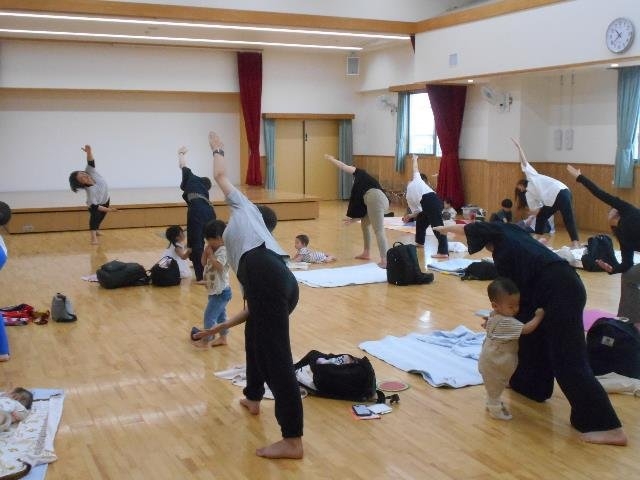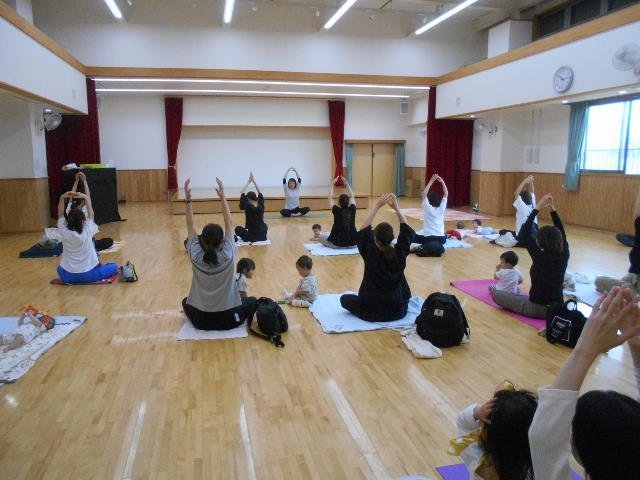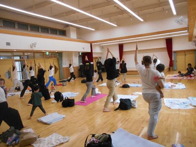 約20組の未就園児の親子の皆さんが「親子ヨガ」に参加してくれました。体を伸ばしてリフレッシュ。日常生活の中で、意識して体を動かすことが効果的と教わりました。