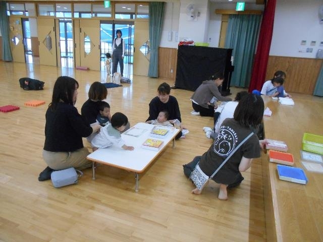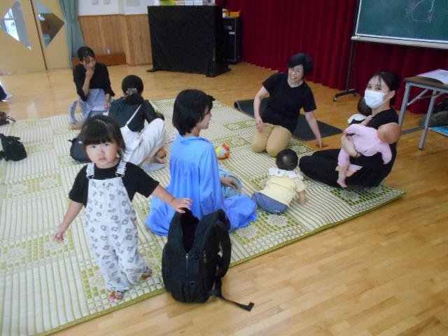 この後、杉浦先生には未就園のお友達とそのお母さんたちにも、わらべうたの楽しさを伝えていただきました。