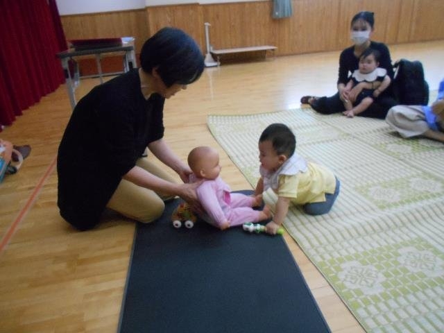 今回のひよこクラブでは、作業療法士さんから子どもの育ちについて大切な関わり方を聞きました。また、人形を使って体幹に良い触れ合い遊びを教えてもらいました。保護者の方から離れられるお子さんは保育者と一緒に好きな玩具を見つけて遊んでいましたよ。次回、第5回ひよこクラブは、12月11日(木)開催予定です。