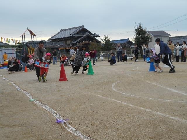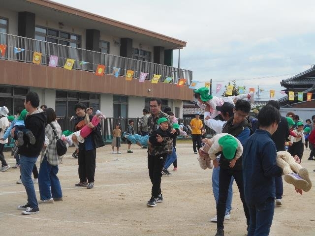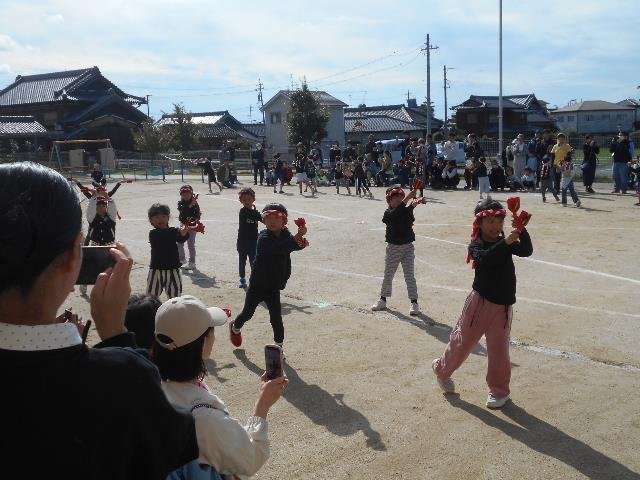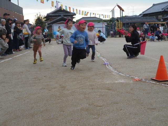 年長さんは自分なりの目標をもち、諦めずに取り組み、やり遂げる達成感を味わいました。また、共通の目的に向かって、自分の力を発揮しながら、友達と力を合わせて取り組みました。曇り空の天気が晴天に変わり、今年の運動会のテーマ「元気いっぱい運動会」が達成されました。