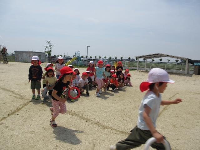 年長組さんのリレーは年中組さん、年少組さんにとって憧れ☆ ずっと見て応援をしてきたのでルールもちゃんと分かります!「リレーやろー!」と声をかけると、「やりたーい!」と言ってワクワクしながら集まってくる子どもたち。同じチームの子を「がんばれー!!」と一生懸命応援しながら、繰り返し楽しんでいます♪