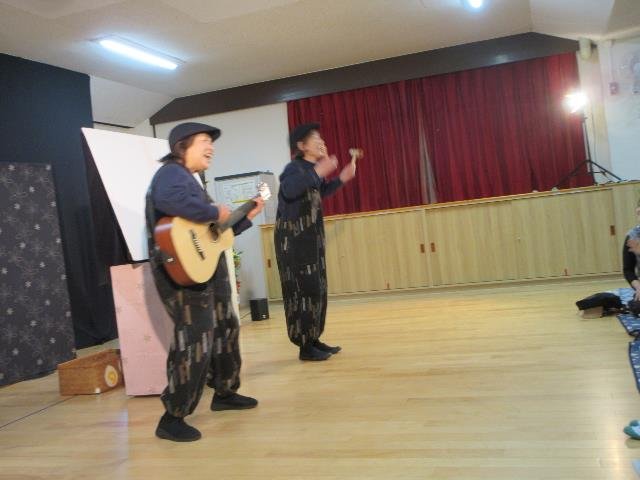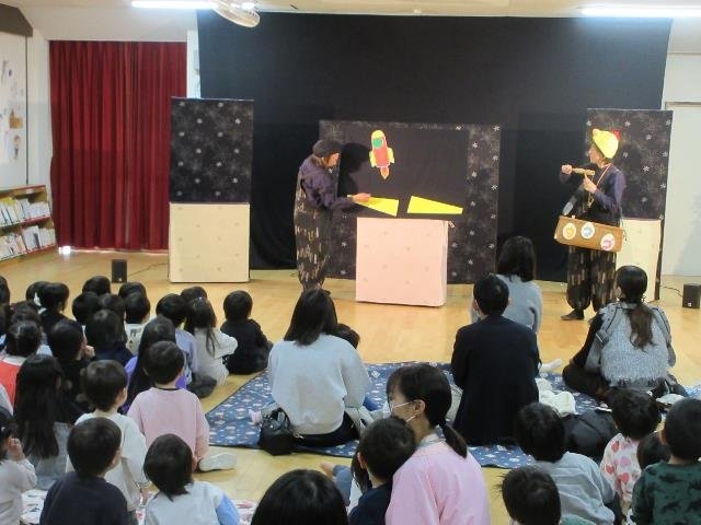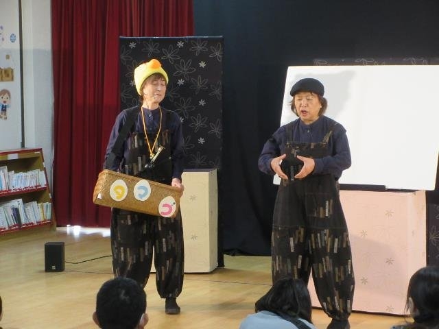 人形劇団「すずきじゅく」さんが来て、パネルシアターや人形劇を見せてくれました。