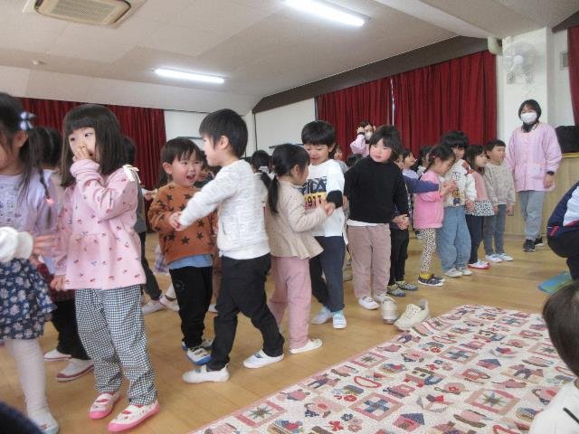 子どもたちの笑い声が遊戯室いっぱいに広がっていました。とても楽しい会になりました。