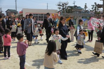 幼児さんは、新田公園まで交通安全に気を付けて歩きました。