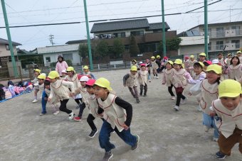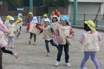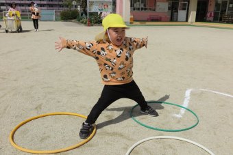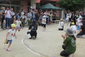 もうすぐ幼児組の運動会です。かけっこや遊戯が始まると、一緒に踊ったり応援をしたりして運動会の雰囲気を楽しんでいます。「もっと、はしろうよ!」「うん!かけっこしよう」と、トラックを何周も走っている子もいます。運動会、たのしみだね!