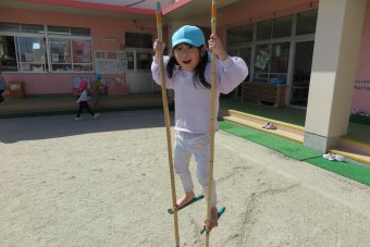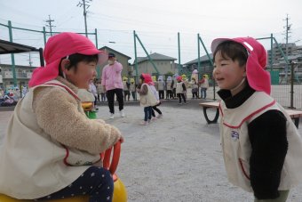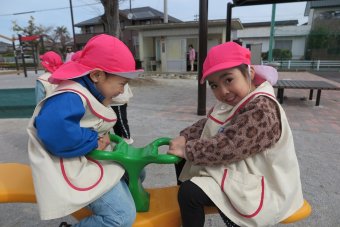 息を合わせてシーソーを揺らしたり、保育園より大きな鉄棒にぶら下がったり。思い思いに遊び、笑顔あふれる時間となりました。