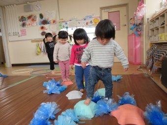 遊具はでの遊びでは「じゅんばんにつかおう」「いっしょにやろうよ!」と、自然と遊び方を伝えたり、友達と誘い合ったりしている姿に成長を感じました。