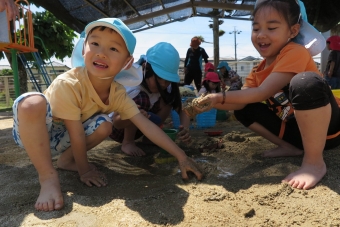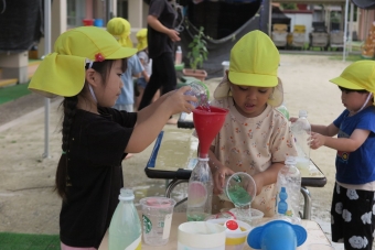 これから盛り上がっていく夏ならではの遊びの中で、土や水、風など遊びの中で自然に触れ、面白さや不思議さを感じられるようにしていきたいと思います。