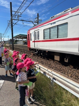 幼児組は電車を見に散歩へ行ってきました。年少児にとっては、初めての園外散歩です♪踏切の音が鳴ると、「でんしゃがくる!」ときょろきょろと左右を見て、どちらから電車が来るのか探していました。